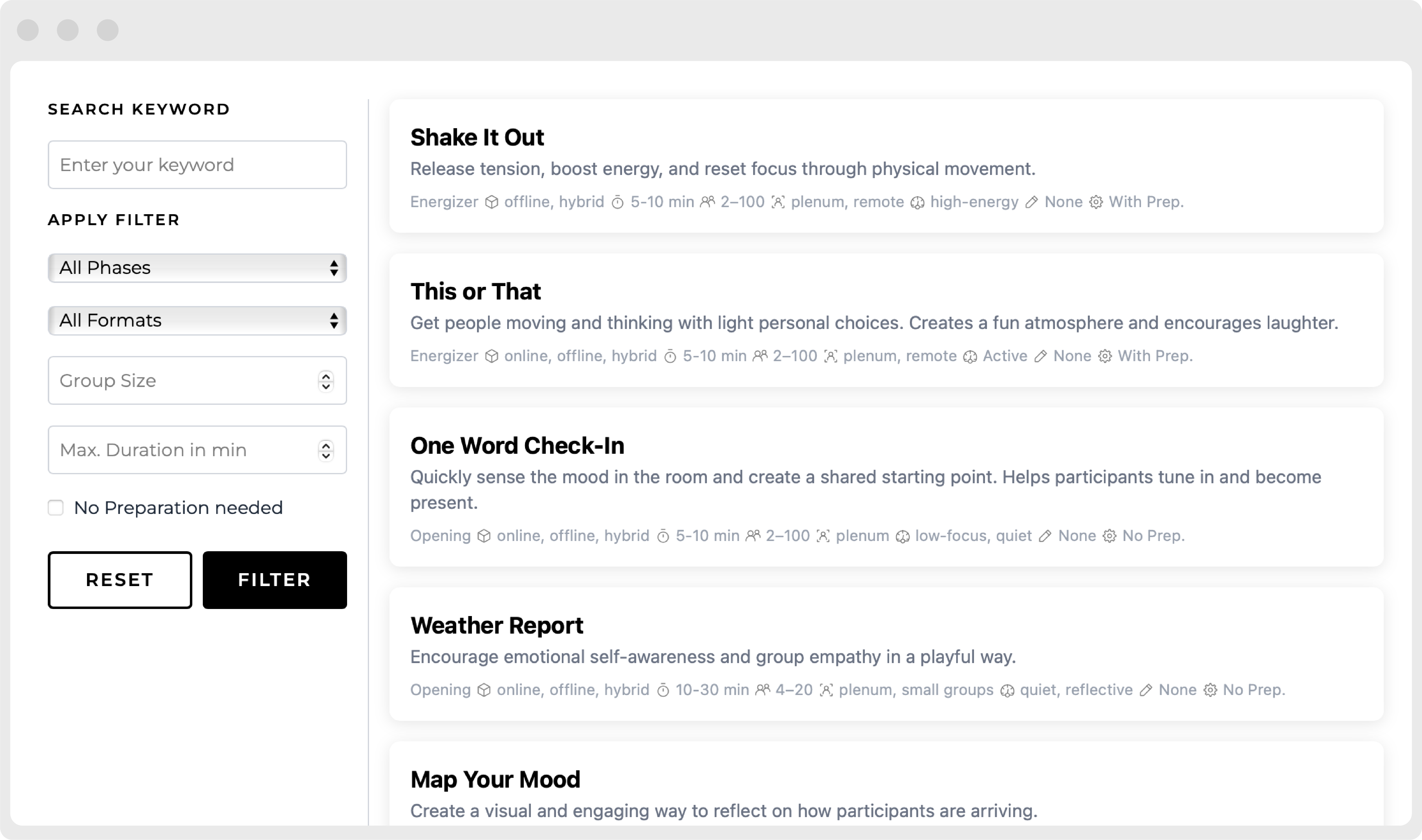 Keep your workshops fresh and impactful with fast, proven methods at your fingertips.